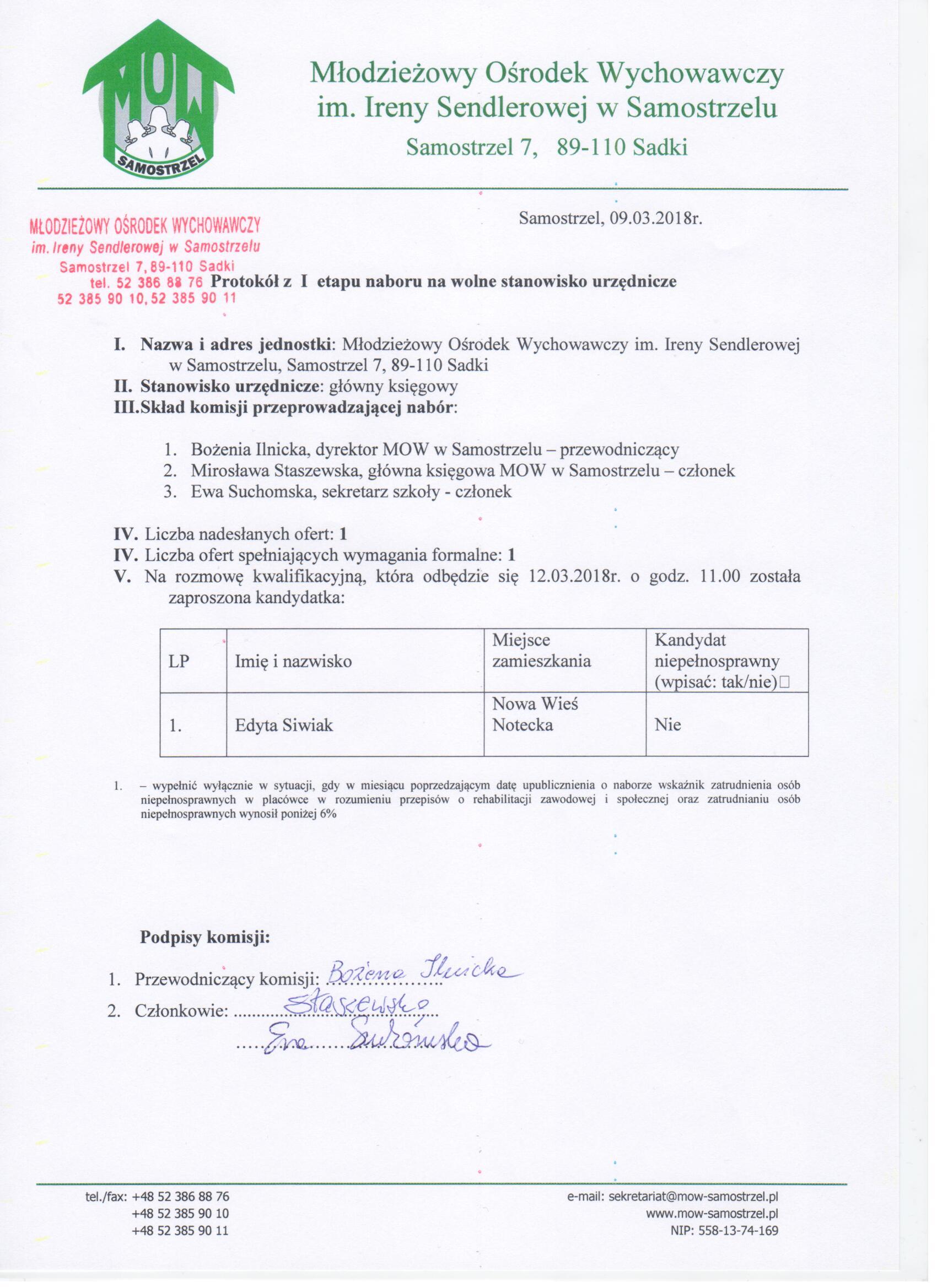 | protokół z I etapu naboru | dodany: 15:34, 20.03.2018 | przez: Bożena Ilnicka |